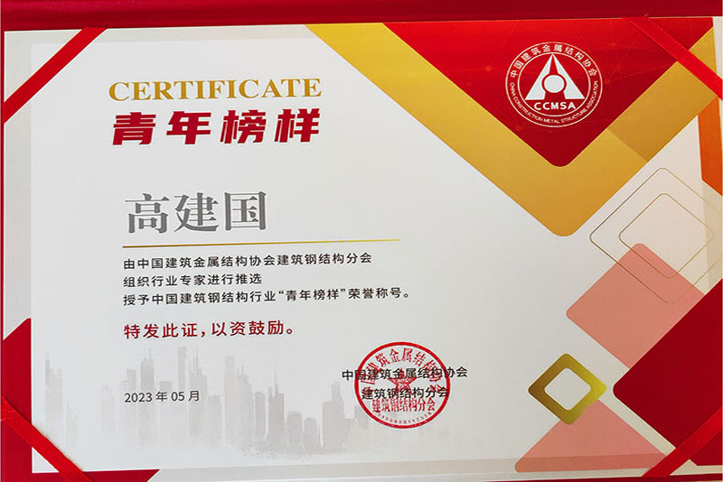 高建國同志榮獲中國建筑鋼結(jié)構(gòu)行業(yè)青年榜樣稱號