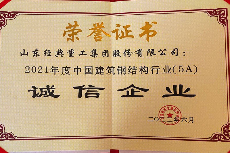 公司榮獲中國建筑鋼結(jié)構(gòu)行業(yè)5A誠信企業(yè)稱號