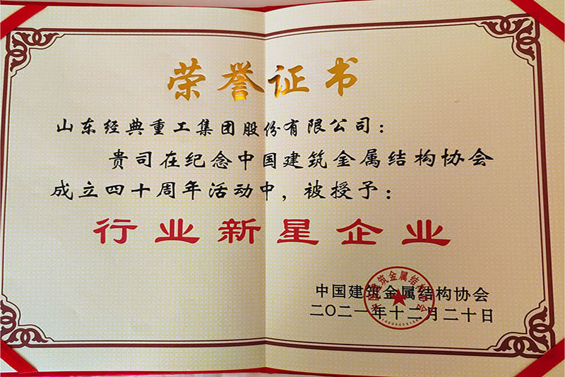 公司榮獲中國建筑金屬結(jié)構(gòu)協(xié)會行業(yè)新星企業(yè)稱號