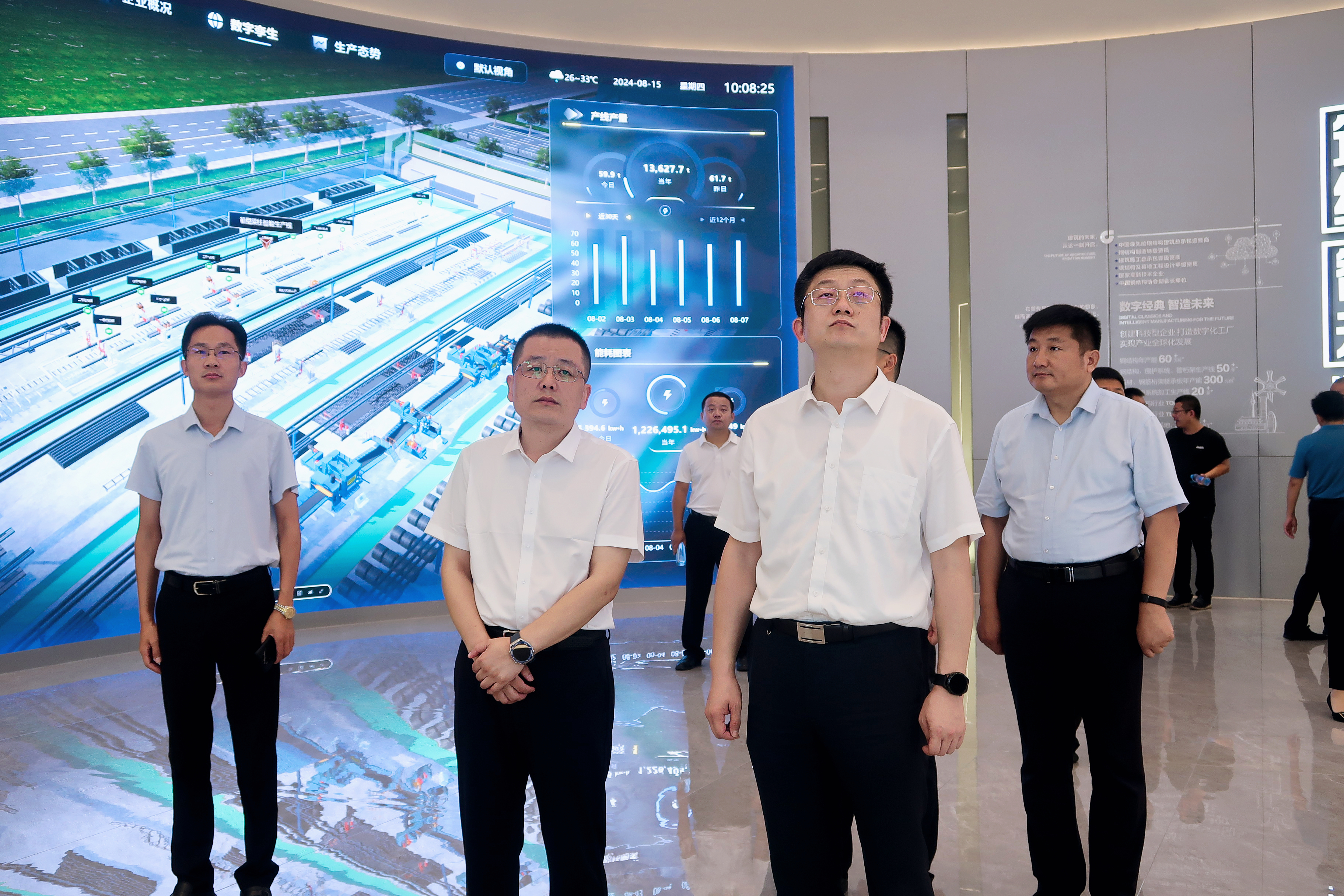 王慶書(shū)記一行來(lái)到集團(tuán)展廳察看工業(yè)數(shù)字化信息平臺(tái)建設(shè)情況,詳細(xì)了解了數(shù)字生產(chǎn)、數(shù)字設(shè)備、數(shù)字孿生以及產(chǎn)業(yè)數(shù)字化發(fā)展等情況,對(duì)經(jīng)典集團(tuán)數(shù)字化轉(zhuǎn)型的先進(jìn)做法和取得成效給予了充分肯定。他強(qiáng)調(diào),要繼續(xù)保持創(chuàng)新發(fā)展的良好勢(shì)頭,加快推進(jìn)數(shù)字化轉(zhuǎn)型,不斷深化數(shù)字賦能工業(yè)發(fā)展,探索更多新技術(shù)、新應(yīng)用、新模式,進(jìn)一步提升企業(yè)的智能化水平和核心競(jìng)爭(zhēng)力。