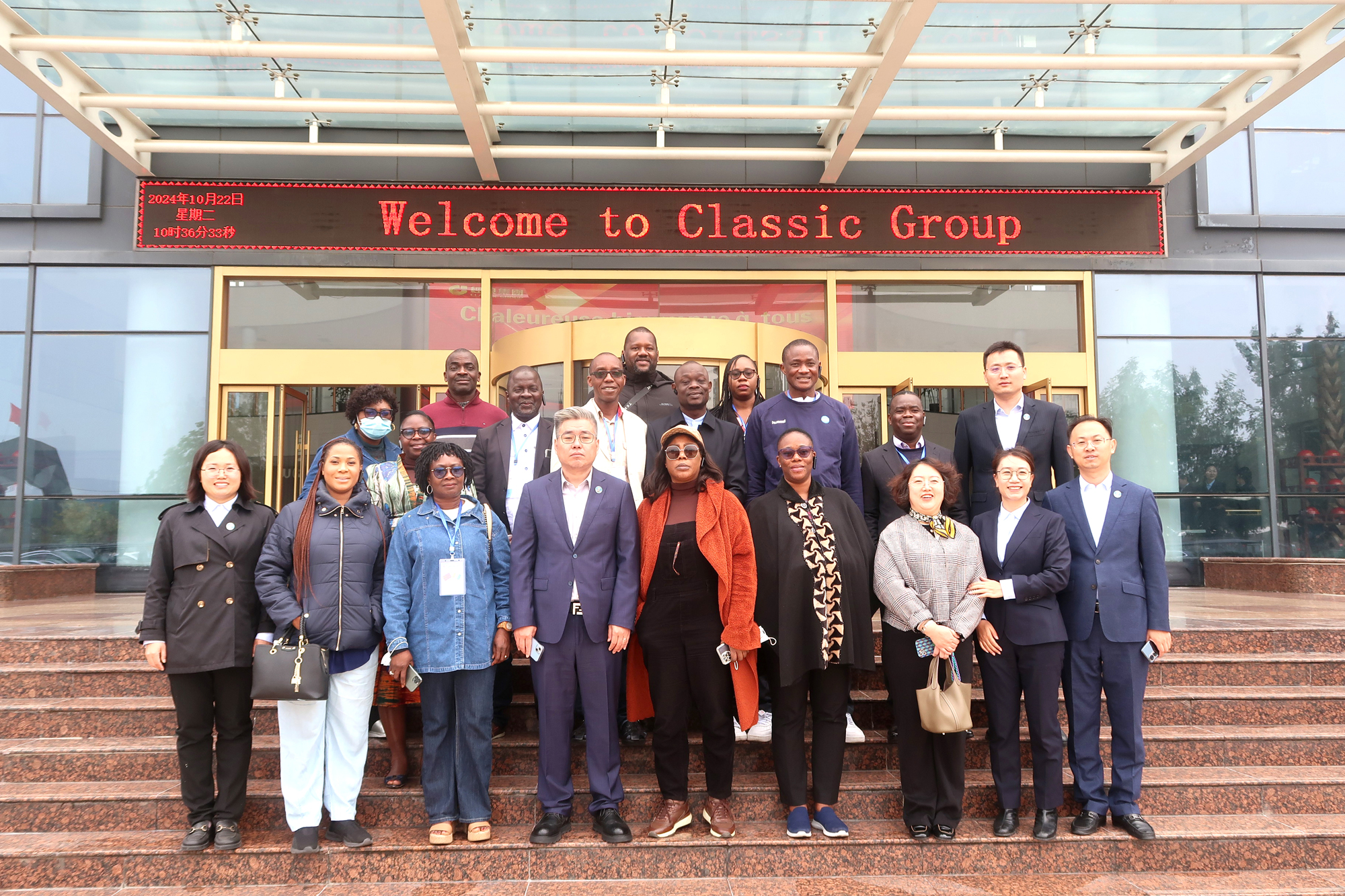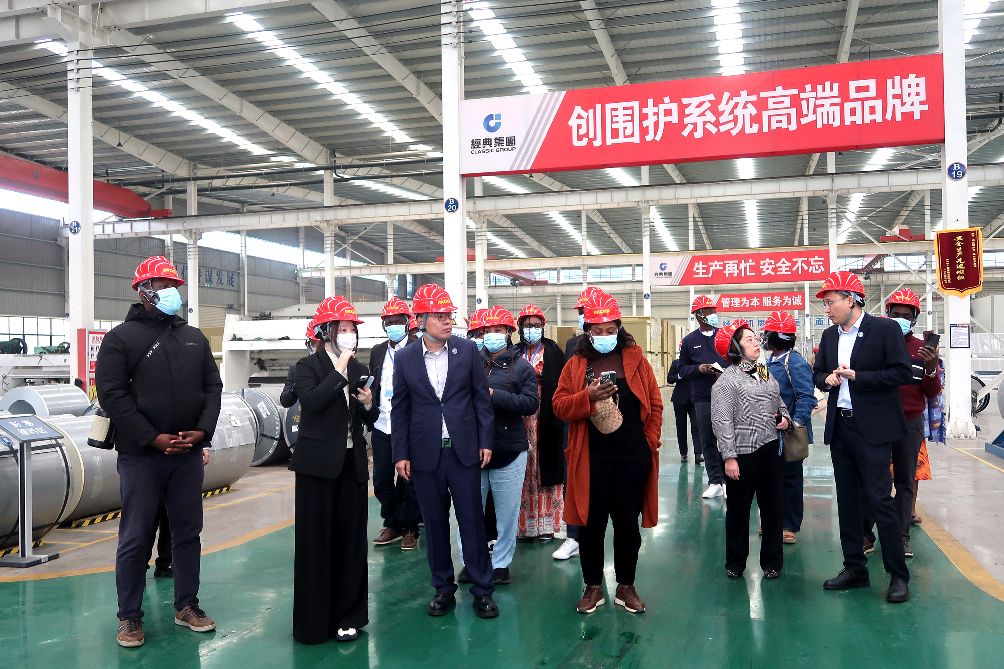 10月22日上午,商務(wù)部援外培訓(xùn)項目“科特迪瓦中高級外交官研修班”一行20余人,在山東外貿(mào)職業(yè)學(xué)院國際官員研修學(xué)院院長王保紅帶隊下,蒞臨經(jīng)典集團就工業(yè)發(fā)展經(jīng)驗、中外經(jīng)貿(mào)合作等方面的經(jīng)驗做法進行參觀交流。經(jīng)典集團副總經(jīng)理兼生產(chǎn)總監(jiān)張琦、副總經(jīng)理侯士輝等陪同。