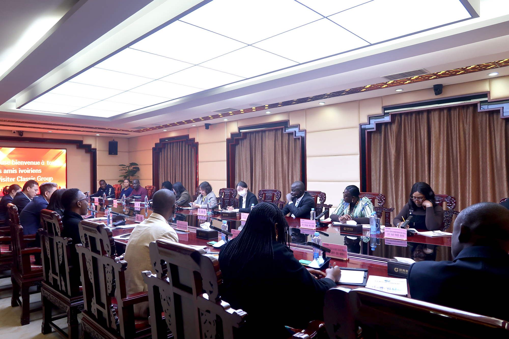 研修班學(xué)員先后參觀了經(jīng)典集團凱思諾智能化生產(chǎn)線、中冶智能化生產(chǎn)車間以及高端裝配式建筑集成房屋項目,親眼見證了智能制造的魅力與高效。隨后的座談會上,張琦對遠道而來的研修班學(xué)員表示誠摯歡迎,分享了集團發(fā)展歷程、生產(chǎn)經(jīng)營、企業(yè)文化建設(shè)等情況,著重闡述了集團產(chǎn)業(yè)布局和對外貿(mào)易情況。研修班成員對經(jīng)典集團裝配式建筑集群規(guī)模及對外貿(mào)易合作的廣泛影響力給予了高度評價,對集團的智能制造技術(shù)和卓越產(chǎn)品品質(zhì)表達了由衷的贊賞與認同,并表達了未來深化交流、共促科特迪瓦建筑鋼結(jié)構(gòu)行業(yè)發(fā)展的美好愿景,共謀互利共贏的未來。
