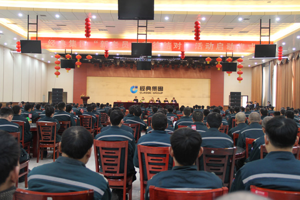 為加快技能人才培養,提升全體職工的技能水平,推進企業更好更快發展,11月30日,經典集團在職工活動中心宴會廳隆重舉辦“新老員工 師徒結對”活動啟動儀式。