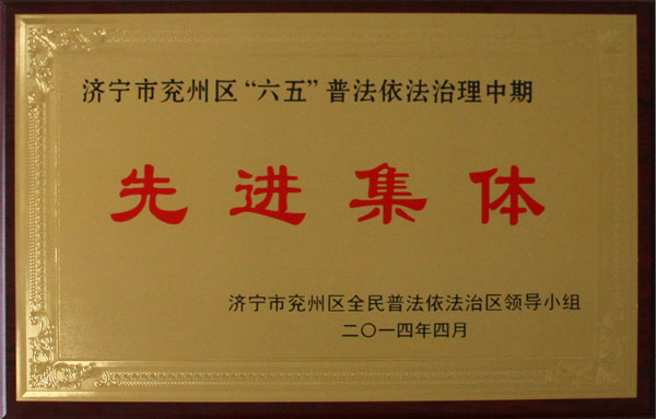 經典集團榮獲兗州區“六五”普法依法治理中期先進集體