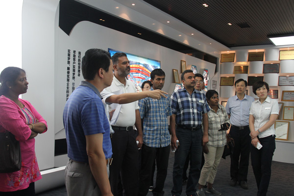 亞洲國家行業商會領導一行參觀了經典集團文化中心、項目管理中心、綜合辦公室、營銷中心和鋼結構制造生產車間,杜福生總經理介紹了經典集團生產經營、技術創新、產學研合作、對外承攬工程等有關情況,并與外賓們親切交流。