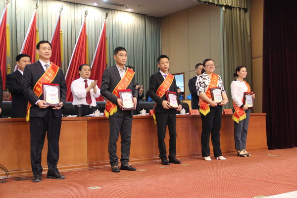 市委領導為周超董事長頒發獎牌(中間)