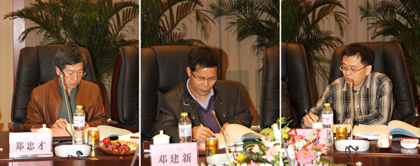 科技成果鑒定會主任委員鄧建新(中間)副主任委員鄭忠才、王強現場評議