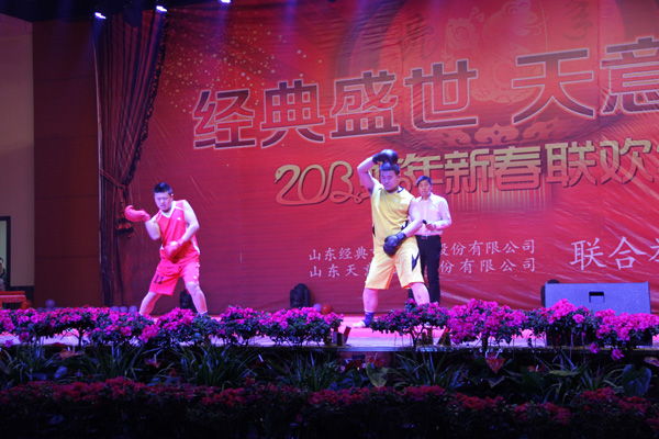 新春年會在激揚的音樂聲中拉開帷幕,全體家人盛裝出席,走過紅地毯,主持人生動的開場白把大家帶入了歡樂的海洋。傾情演唱的歌手、熱血沸騰的旋律、積極互動的觀眾、一次又一次把聯歡會的氣氛推向高潮。開場舞《和諧中國》,異國風情舞蹈《青花瓷》,別出心裁的小品拳王爭霸賽、《白云、黑土后傳》等等,盛情展現了經典員工的多才多藝和敢于挑戰的熱情;聲情并茂的相聲經典說唱、小品等等引來陣陣歡笑聲;《經典之歌—讓愛傳承》更是唱出了每位員工的心聲。全部節目均由大家自編自演,年會的精彩演出和演出效果真實的展現了全公司員工的團結力量和熱血激情,贏得了到場觀眾的熱烈掌聲。